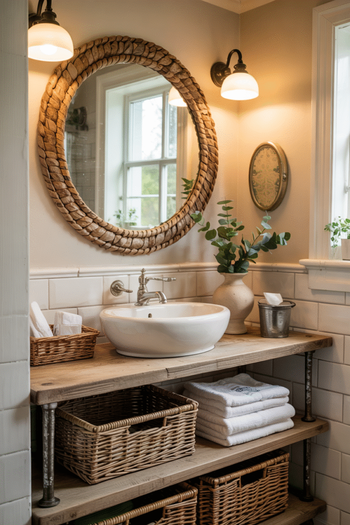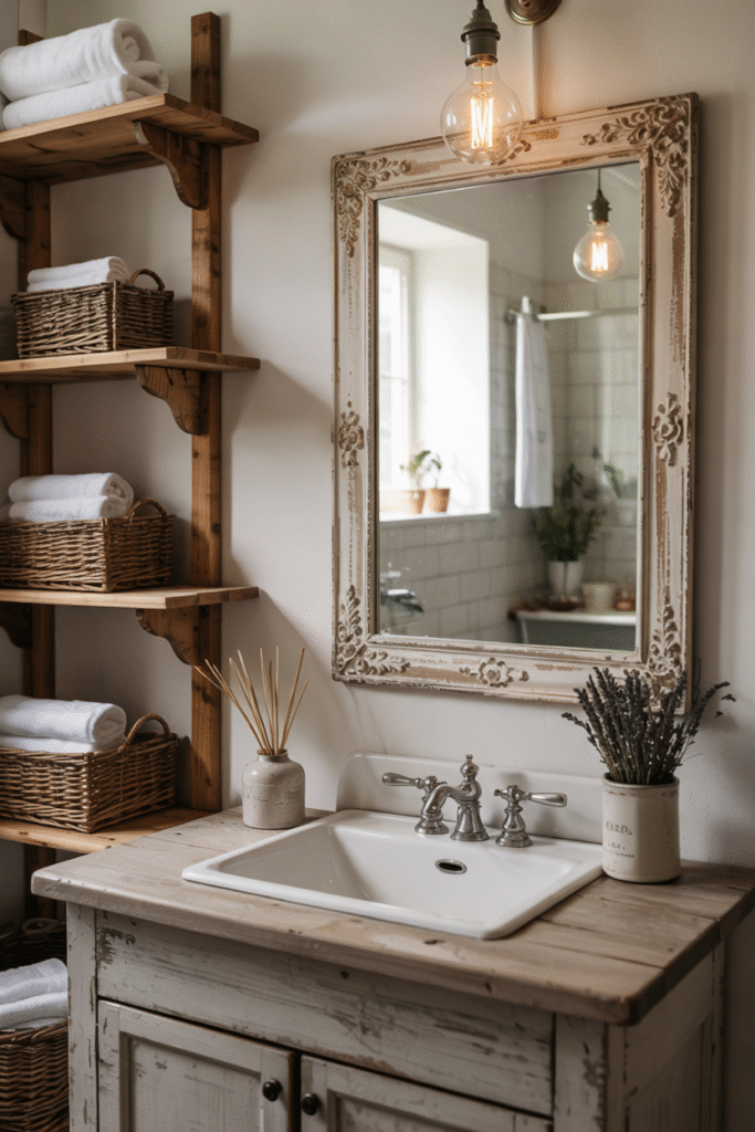 One of the easiest ways to refresh your room is through bathroom wall decor. Floating shelves, framed art prints, vintage mirrors, and textured wall panels can completely elevate the atmosphere. For rustic homes, farmhouse bathroom decor adds warmth with wooden shelves, wicker baskets, and antique brass accents. In contrast, modern bathroom decor focuses on sleek lines, matte finishes, and clutter-free styling.