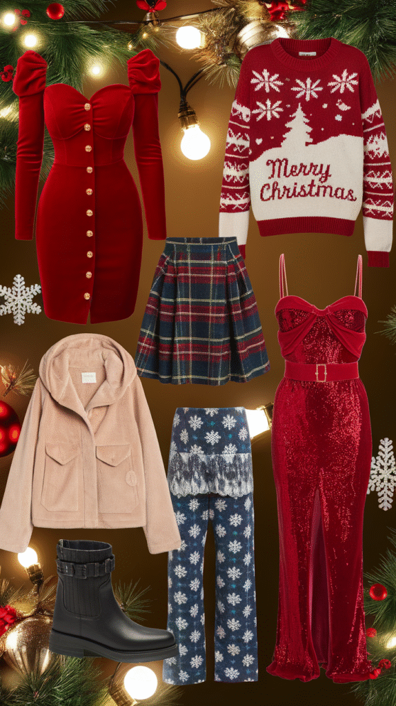 - A tweed blazer, velvet trousers or bouclé outerwear can instantly feel festive yet wearable.