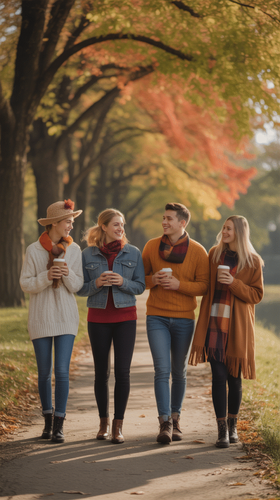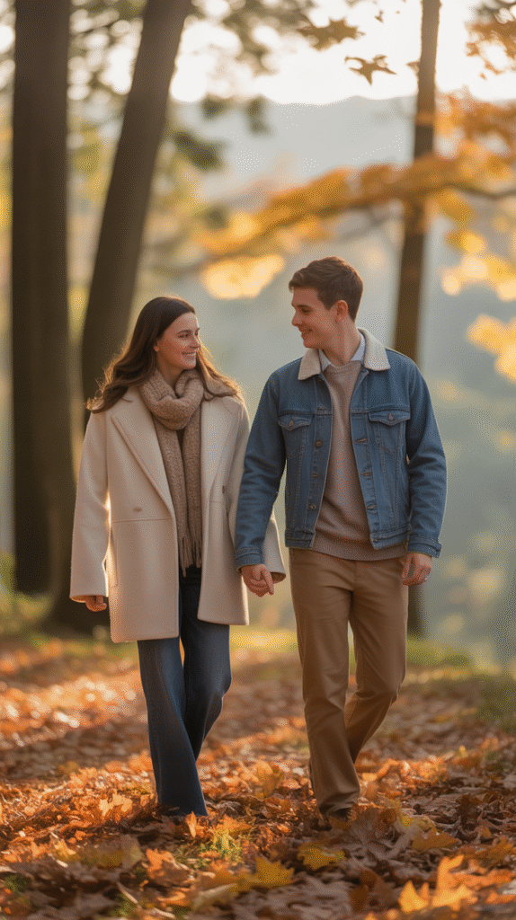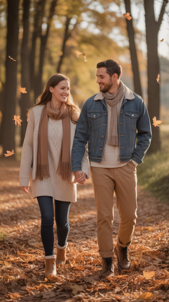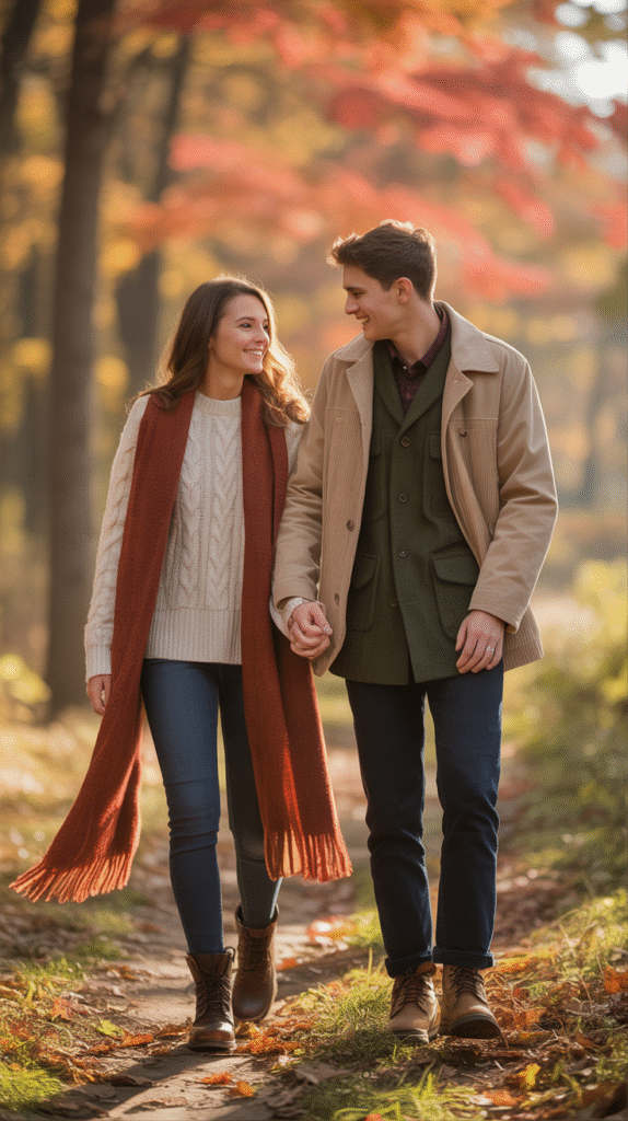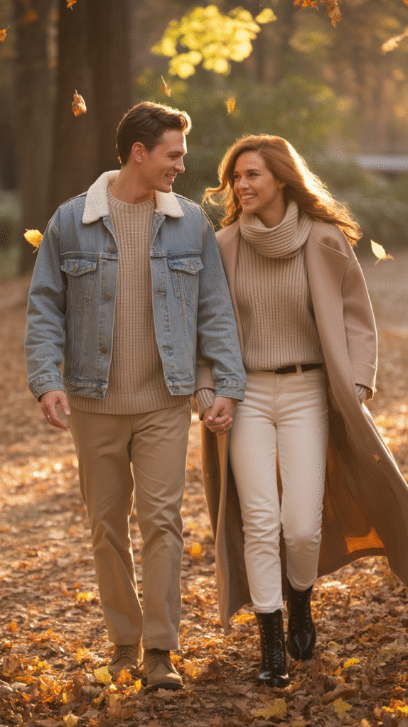 Old-school is new again! Try matching 1950s or 1970s fall looks with your partner — think plaid skirts, suspenders, and retro sweaters. Perfect for cozy fall dates or costume contests.