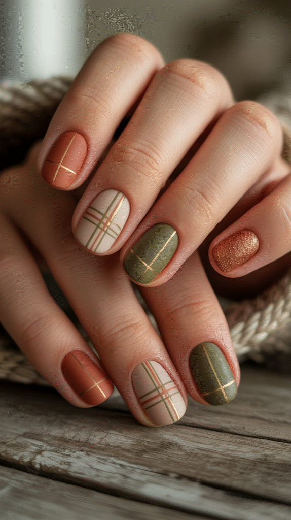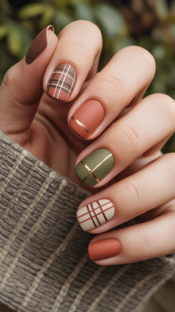 - Cozy chic looks – plaid, knitwear, and fall tones like orange, brown, and gold.