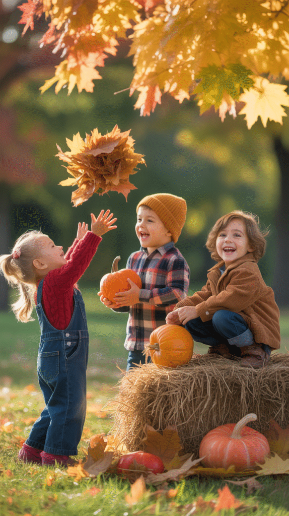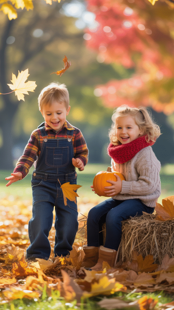 - Autumn Tree Costume: Brown outfit + orange leaf accessories.