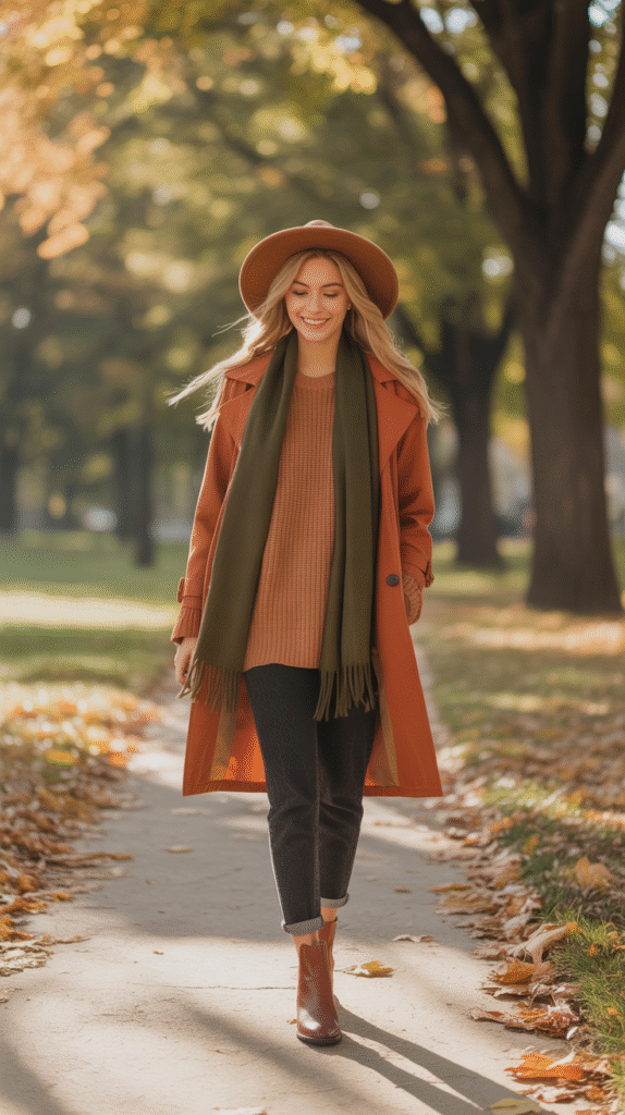 This approach makes your fall costume both comfortable and chic, perfect for outdoor events and chilly evenings.