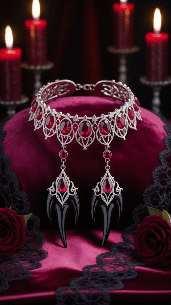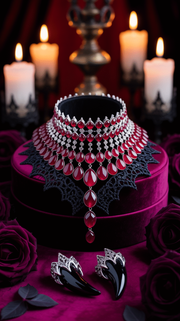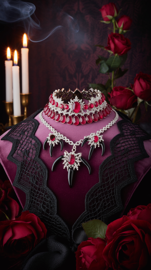 • Layer chokers with longer chains for a gothic depth aesthetic.