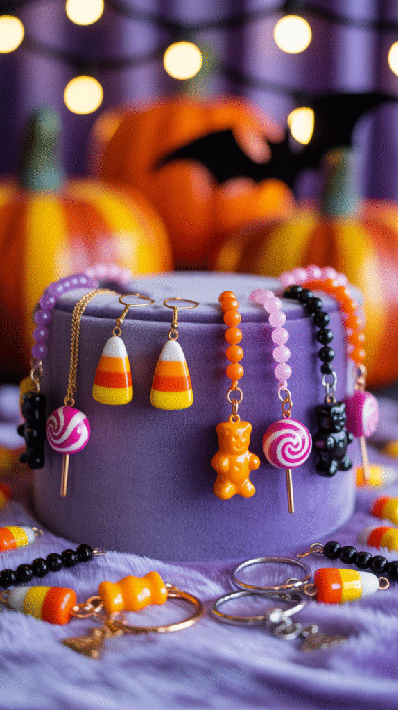 There’s a lot of matching accessories like little pumpkin earrings with jewels, rings and pendants, and a lot more.