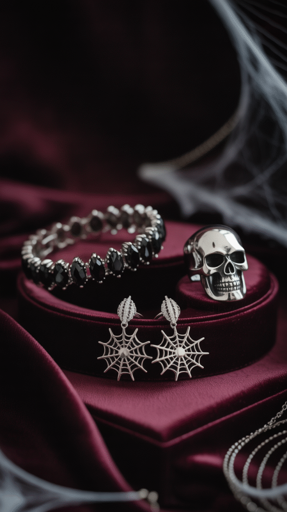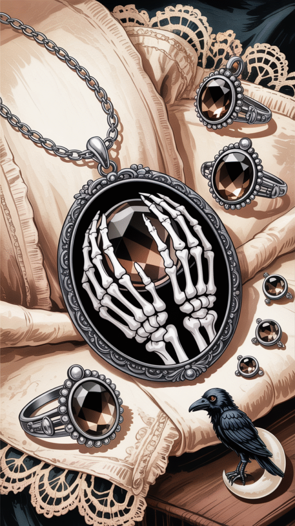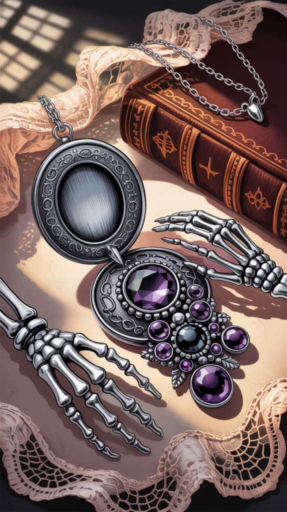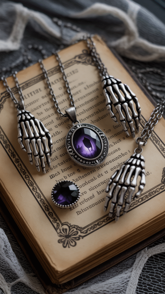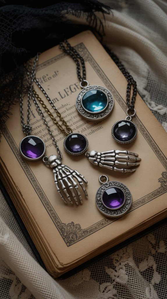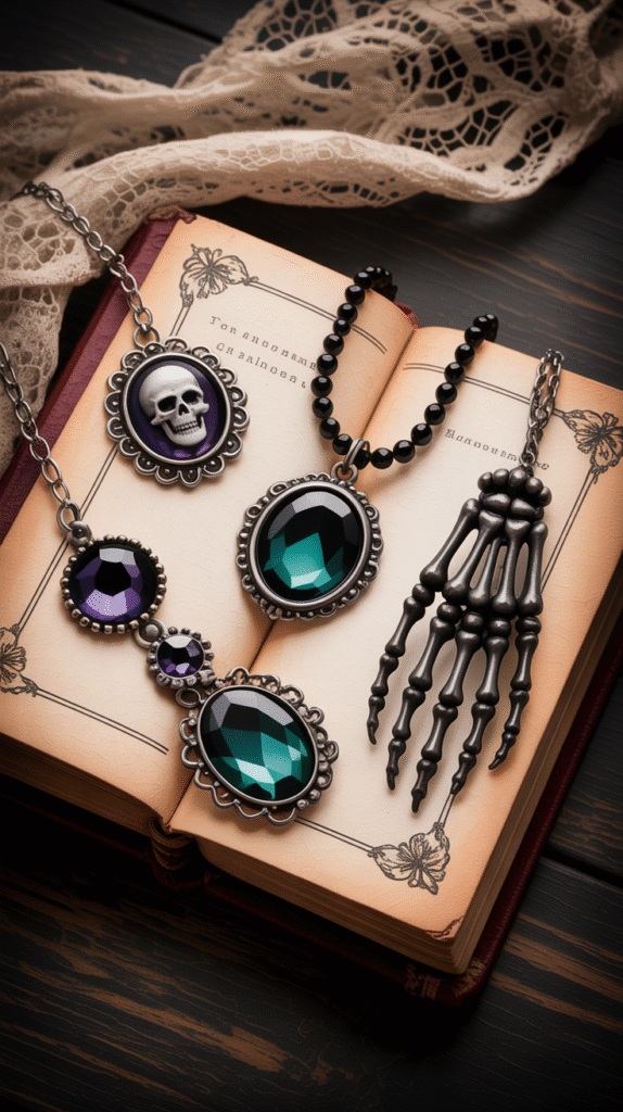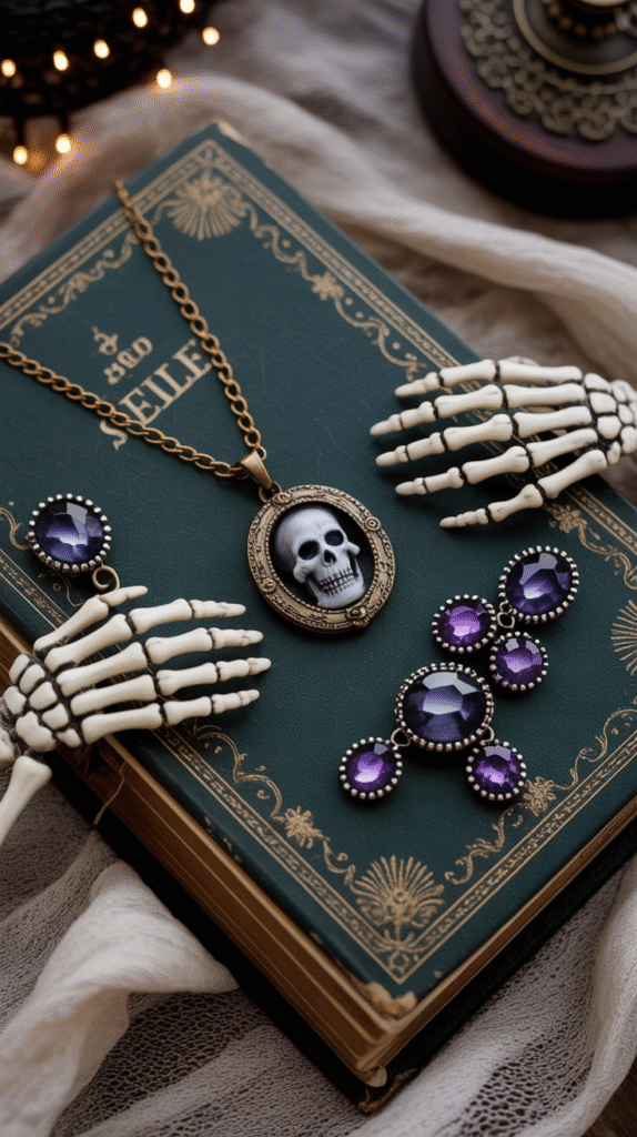 Spooky portraits in vintage or antique-style lockets and cameos, art-deco metalwork, and other pieces that mesh antique charm with Halloween motifs—“Vintage-inspired Halloween jewellery designs” is a phrase that comes up a lot in trend articles.