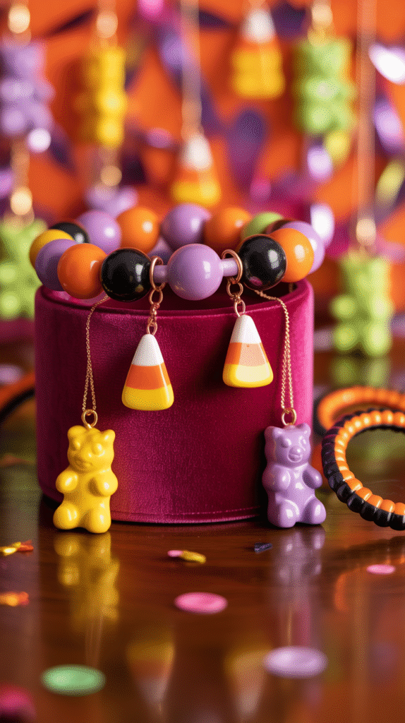 Consider the idea of the black lace choker with a crystal on the back. A ring with a skull encrusted with a dark red stone. A spiderweb pendant dripping from the neck and other designs, dark metal finishes, and intricate filigree. A fusion of Halloween and Gothic styles is both dramatic and elegant. Many Halloween jewelry blogs on google have “Gothic Halloween jewelry for women” as a top keyword.