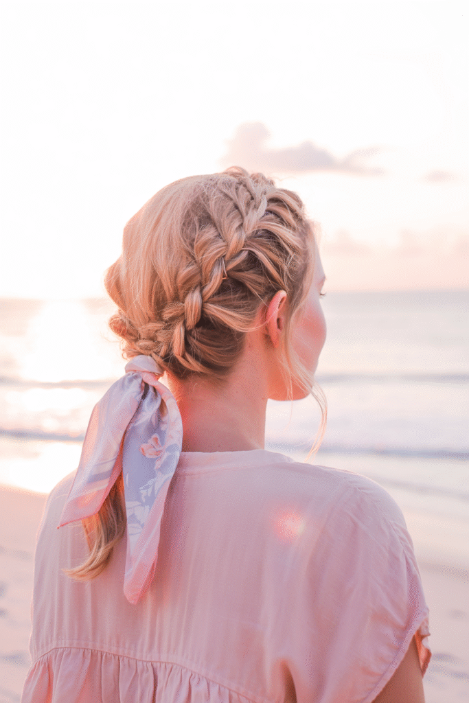 For travel lovers, vacation hairstyles summer should be simple yet stylish. Braids, low buns, and scarf ponytails are perfect for sightseeing, flights, and beach resorts.