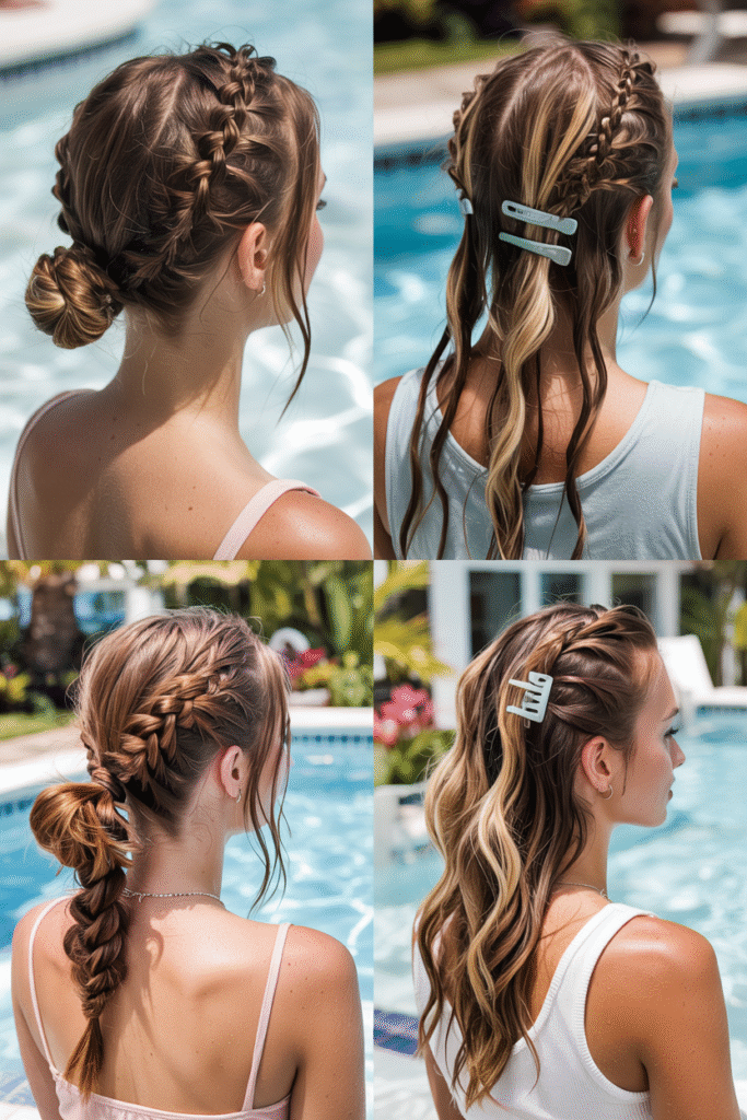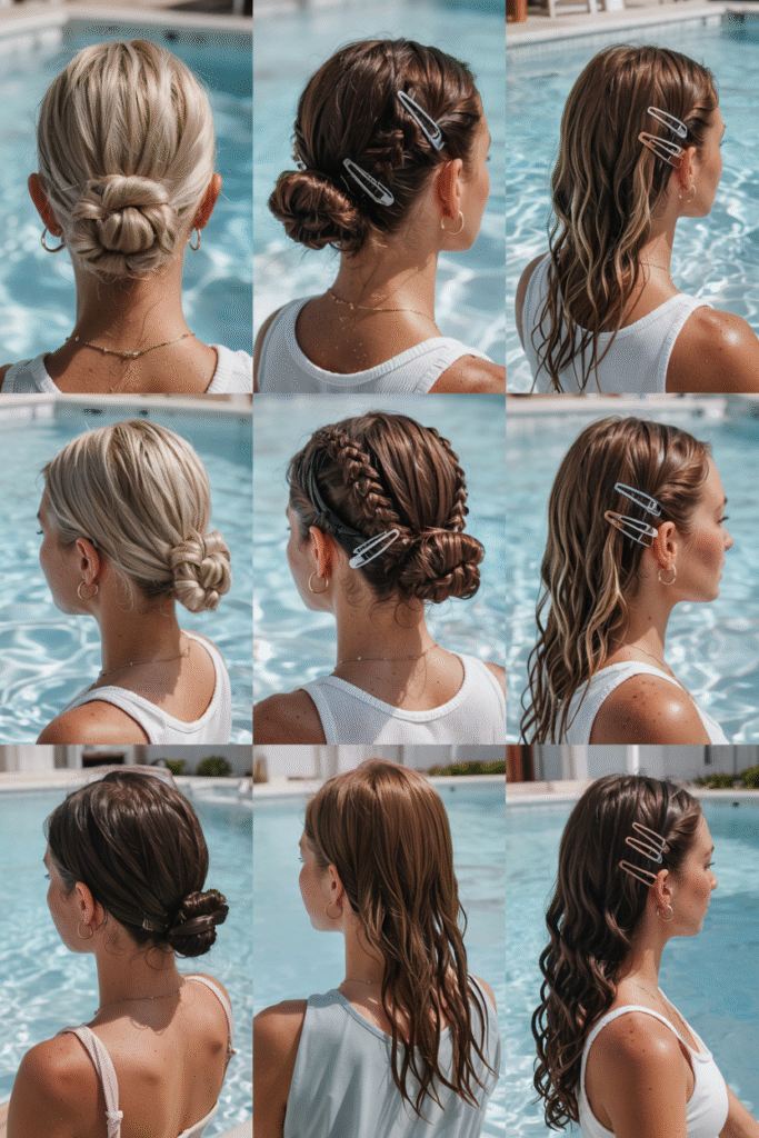 If you’re spending the day swimming, pool day hairstyles like braided buns and sleek top knots are must-tries. Many people also search for easy pool hairstyles for summer because they help avoid post-swim tangles.