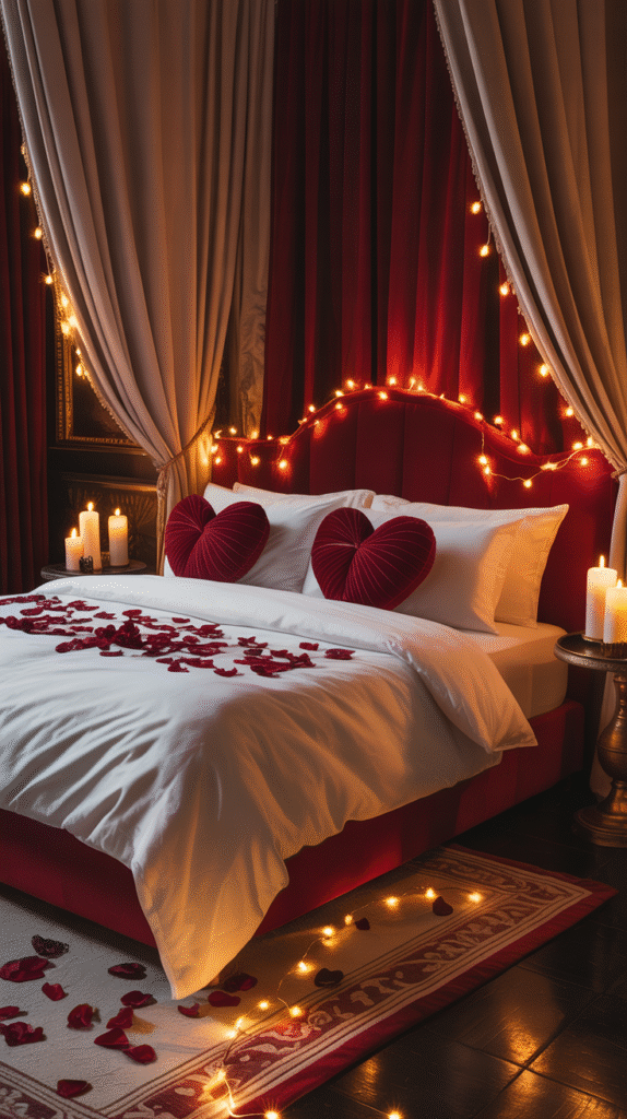 ✨: Valentine’s Day bed décor, romantic bed setup for couples