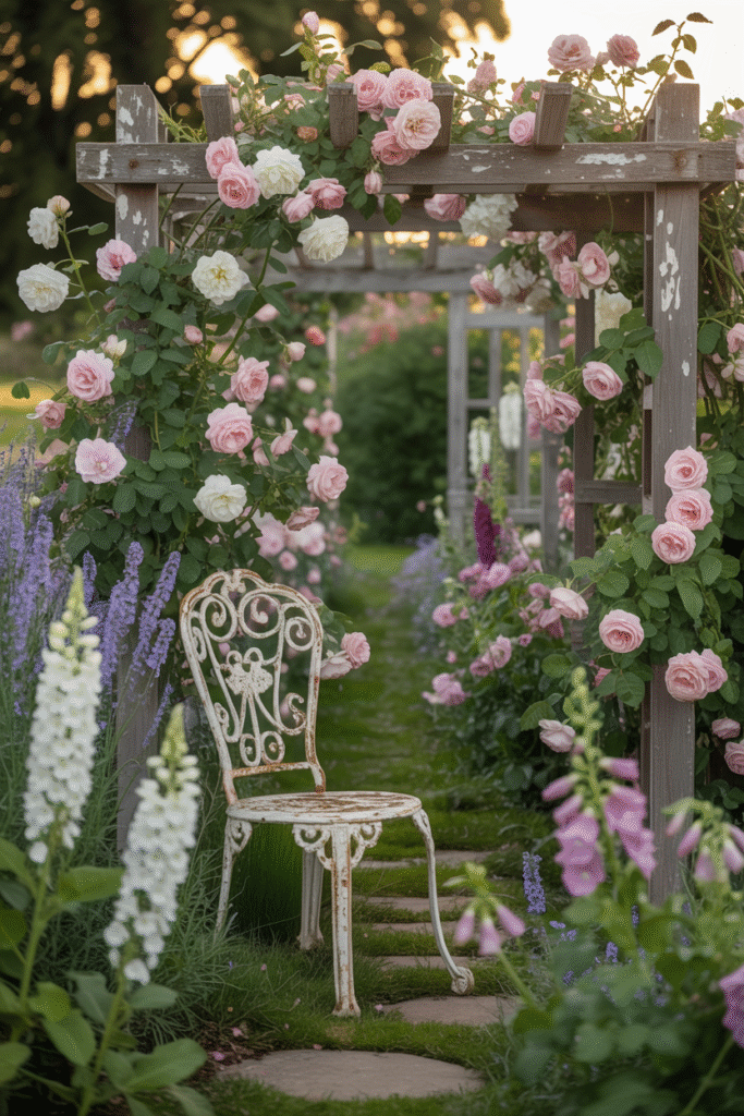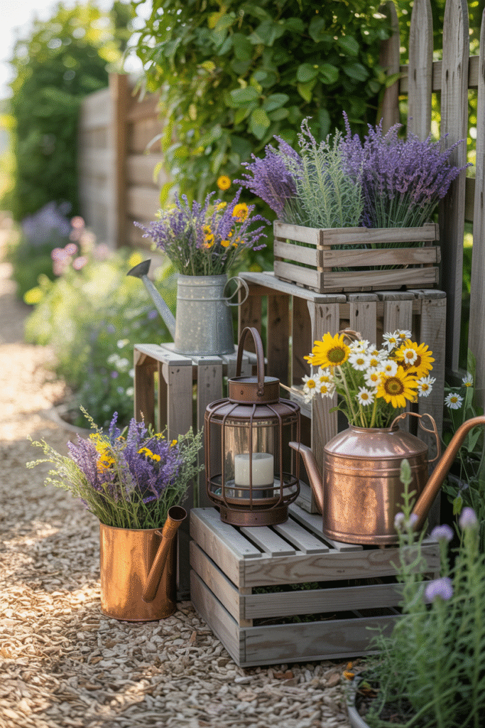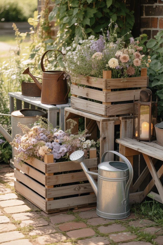 Combining these styles with rustic elements results in a beautiful vintage garden aesthetic that feels warm and inviting.