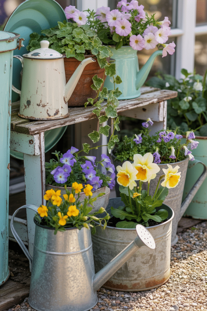Try using hanging planters, vertical gardens, and vintage shelves to display flowers and plants. These ideas are also great for small vintage garden ideas where space is limited but creativity can make a big impact.