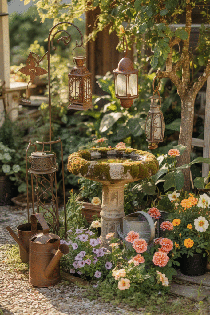 These decorative elements help create the perfect rustic vintage garden decor that looks timeless and elegant.