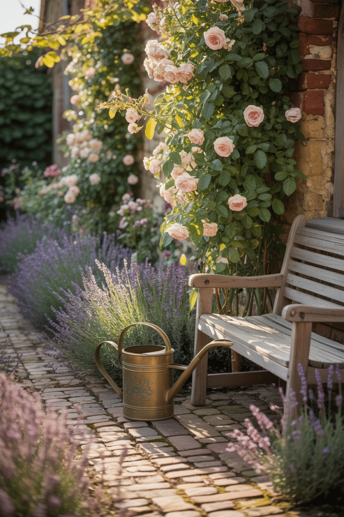 Beautiful roses, lavender, and climbing vines are commonly used in vintage cottage garden design ideas. These plants give the garden a natural, slightly wild appearance while maintaining a classic and elegant feel.